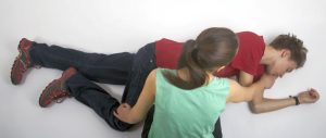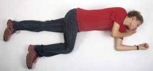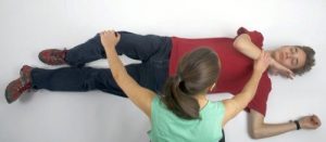 Nézd meg most lépésről lépésre a stabil oldalfektetés lépéseit!- A sérült alsó végtagjait zárd össze. Térdelj a bajbajutott csípőjével egy vonalba. Közelebbi felső végtagját a hónaljánál és a könyökénél hajlítsd be közel derékszögben! Ha a behajlítás nehezített ne erőltesd!